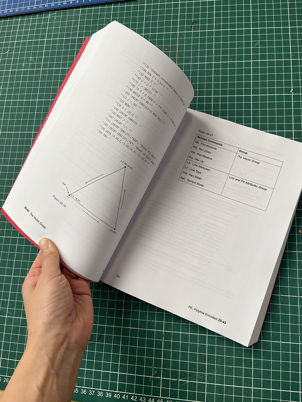i think it's important to treat HP-GL language and HP plotter manuals as a critical part of the act of cursing. these manuals are already an obsolete artifacts, they are no longer officially published, it's a stack of commands that not many actively uses anymore. for this pmomm, these manuals should be more than a reference, it should become a ritualistic components, tools. so i wanted them in book form. because once it gets a physical body, it's more convincing that they turn into ritualistic matter: as a digital pdf it's jsut dormant data, but when it acquires material form, it becomes an object you can handle differently. and the book format itself carries a performative value also. once they are printed and bound, it felt almost like necromancy, reviving a dead language. probably i'm putting to much into it, but in order for a language to live again, it needs a body. the physical manual becomes an apparatus for ritual, a gesture that the language still has presence and validity(also a bit more authority in a strange way). bootlegging these files into a physical book felt like another ritual in itself, turning obsolete stack of code and manuals into ritual grammar, also kind of like a fake archive.